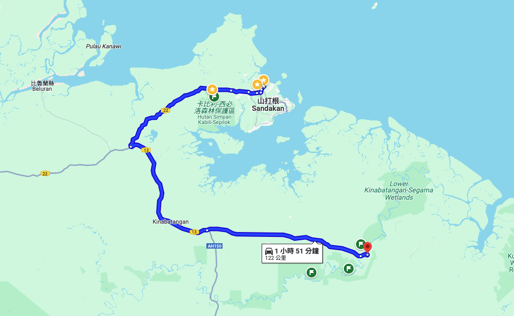 Kinabatangan River 位於山打根,所以還需要轉搭國內線飛機。